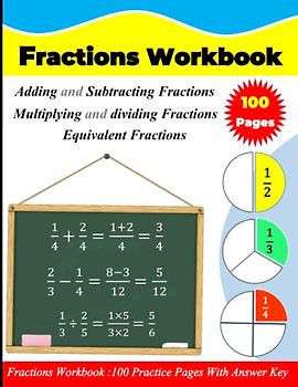 Fractions workbook | Adding & Subtracting fractions | Equivalent fractions: 100 practice pages with answer key