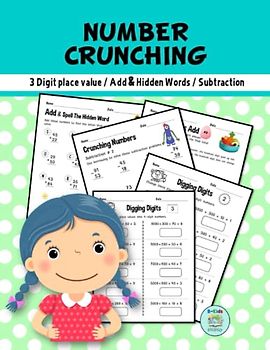 Number Crunching 3 Digit Place Value / Add & Hidden Words / Subtraction: Addition and Subtraction Workbook With Hidden Word, Rounding, Place Value for Grade 2nd - 3rd Age 6-9 Years