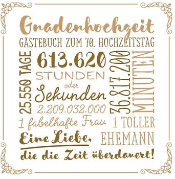 Gnadenhochzeit ~ Gästebuch zum 70. Hochzeitstag: Vintage Dekoration zur Feier der Gnaden-Hochzeit - 70 Jahre - Deko Buch für Glückwünsche und Fotos der Gäste