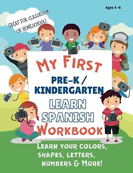 My First Pre-K & Kindergarten Learn Spanish Workbook. Bilingual. Learn your Colors, Shapes, Letters, Numbers & More!