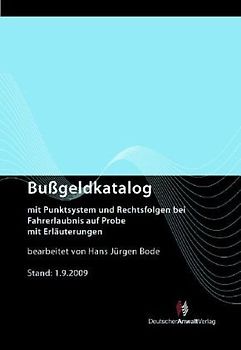Bußgeldkatalog. mit Punktsystem und Rechtsfolgen bei Fahrerlaubnis auf Probe mit Erläuterungen