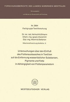Untersuchungen über den Einfluß des Flottenaustausches in Textilien auf die Entfernung wasserlöslicher Substanzen, Pigmente und Fette in Abhängigkeit von Flottenparametern