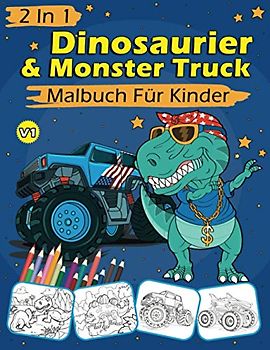 2 In 1 Dinosaurier & Monster Truck Malbuch Für Kinder: 60 Malvorlagen Für Kinder - Dinosaurier & Einzigartige Autos