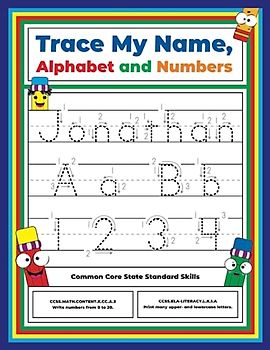 Trace My Name, Alphabet, and Numbers Workbook for Jonathan: Letter and Number Tracing with Arrow Guides and Start Dots