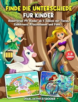 Finde die Unterschiede für Kinder: Bilderrätsel für Kinder ab 5 Jahren mit Tieren, Einhörnern, Prinzessinnen und Feen I 40 Motive inkl. Lösungen I