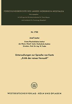 Untersuchungen zur Sprache von Kants „Kritik der reinen Vernunft“
