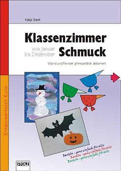 Klassenzimmer-Schmuck von Januar bis Dezember. Wand und Fenster jahreszeitlich dekoriert