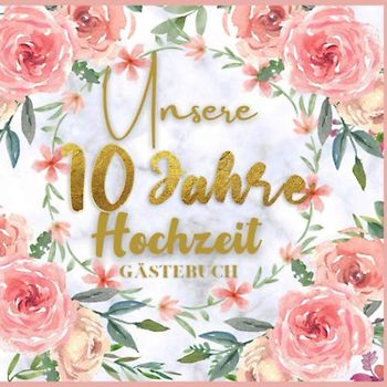Unser 10 Jahre Hochzeit Gästebuch: Ideen zur Feier der 10 Hochzeitstag - 10 Jahre - Geschenk Buch für Glückwünsche und Fotos der Gäste - Gästebuch mit Fotorahmen Seite - hochzeits sprüche