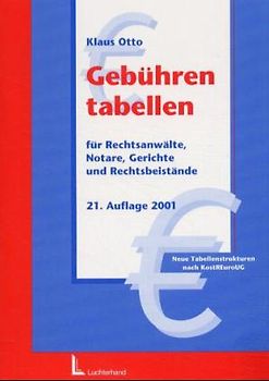 Gebührentabellen. Für Rechtsanwälte, Notare, Gerichte, Gerichtsvollzieher und Rechtsbeistände