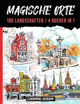 Magische Orte - 100 Landschaften / 4 Bucher in 1: malbuch für erwachsene landschaft - anti stress buch