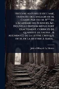 Histoire naturelle de l'ame, traduite de l'anglois de M. Charp, par feu M. H*** de l'AcadÃ(c)mie des Sciences, &c. Nouvelle Ã(c)dition revue fort exactement, corrigÃ(c)e de quantitÃ(c) de fautes .. & augmentÃ(c)e de la lettre critique de M. de la Mettrie Ã
