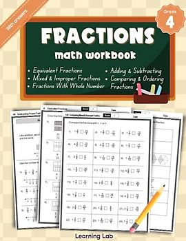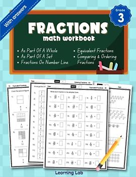 Fractions Math Workbook Grade 3: Fractions As Part Of A Whole, As Part Of A Set, On Number Line, Equivalent Fractions, Comparing and Ordering Fractions | With Answers