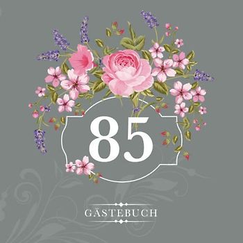 85 Gästebuch: Zur Feier des 85. Geburtstags | Als liebevolle Geschenkidee von Freunden und Verwandten | Dem Geburtstagskind die liebsten Glückwünsche | Für 60 Einträge | Blumendekor auf Grau