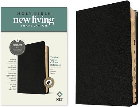 NLT Thinline Center-Column Reference Bible, Filament Enabled (Genuine Leather, Black, Indexed, Red Letter)