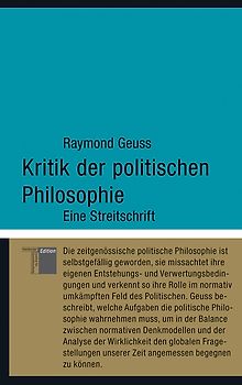 Raymond Geuss, geboren 1946 in Evansville, Indiana, ist emeritierter Professor für Philosophie an der Universität von Cambridge. Er studierte an der Columbia Universityin New York, wo er 1971 promovierte, sowie in Freiburg und lehrte u. a. in Heidelberg, Chicago und Princeton. Geuss war Fellow am Wissenschaftskolleg in Berlin und ist Mitglied der British Academy.