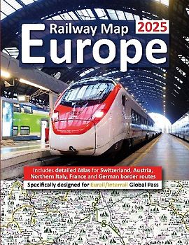 Europe Railway Map 2025 - Features Detailed Atlas for Switzerland and Austria - Designed for Eurail/Interrail Global Pass