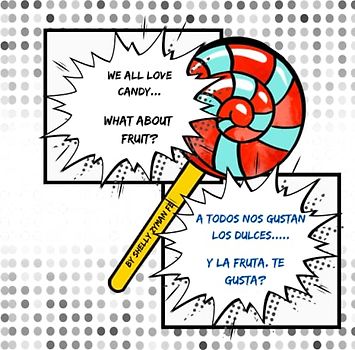 WE ALL LOVE CANDY.. WHAT ABOUT FRUIT? A TODOS NOS GUSTAN LOS DULCES Y LA FRUTA, TE GUSTA?: A BILINGUAL BOOK TO TEACH KIDS ABOUT CANDY FLAVOURING AND FRUIT NAMES (ENGLISH AND SPANISH)