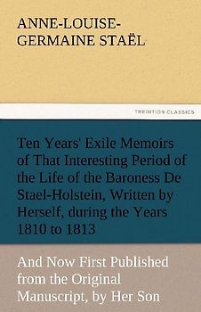Ten Years' Exile Memoirs of That Interesting Period of the Life of the Baroness De Stael-Holstein, Written by Herself, during the Years 1810, 1811, 1812, and 1813, and Now First Published from the Original Manuscript, by Her Son.