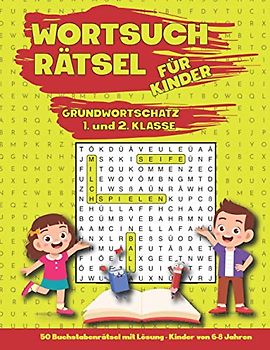 Wortsuchrätsel für Kinder | Grundwortschatz 1. und 2. Klasse (6-8 Jahre): 50 Buchstabenrätsel mit Lösung