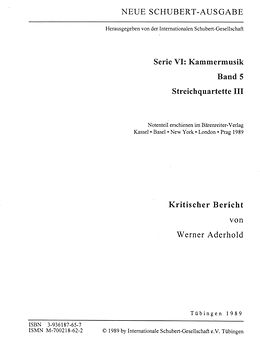 Neue Schubert-Ausgabe. Kritische Berichte / Kammermusik / Streichquartette III
