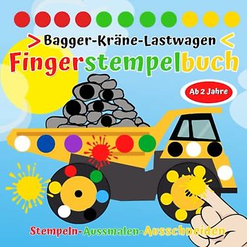 Fingerstempelbuch ab 2 jahre: Fingerstempeln für Kinder ab 2. Fingerfarben Stempelbuch für Jungen.Bagger-Kräne-Lastwagen und Fahrzeuge.Stempeln- Aussmalen- Ausschneiden.