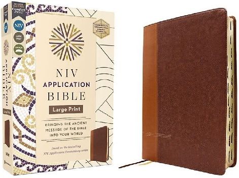 NIV Application Bible, Large Print, Leathersoft, Brown, Red Letter, Thumb Indexed, Comfort Print